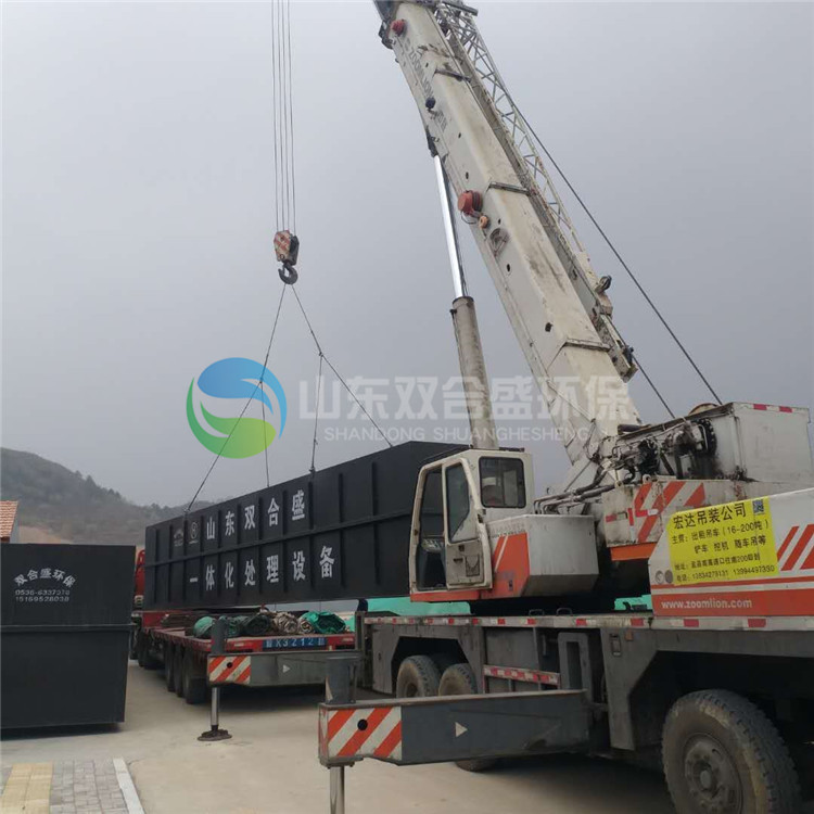 设备主体由玻璃钢或碳钢防腐处理构件组合而成;设备内配有布水系统及水下曝气系统以及沉淀、消毒系统。处理污水时,污水经提升泵进入厌氧池布水管道,通过布水管道,污水均匀上升与厌氧菌种大面积的接触,以达到去除部分COD,分解大分子物质、去除氨氮的目的。然后污水从装置顶部流入好氧池,曝气机水下曝气并推流搅动污水,进入的污水很快与原有的混合液充分混合,适应进水水质的变化。通过曝气系统,污水均匀搅拌混合,同时提高污水中的溶解氧含量,池内各点水质比较均匀,微生物的数量、性质基本相同,因此曝气区各部分的工作情况几乎一致。这就把整个生化反应控制在良好的同一条件下。有机物被微生物逐步降解,污水得到净化。净化后污水经沉淀池泥水分离,然后在消毒池进行消毒进一步处理,污水得到达标排放。