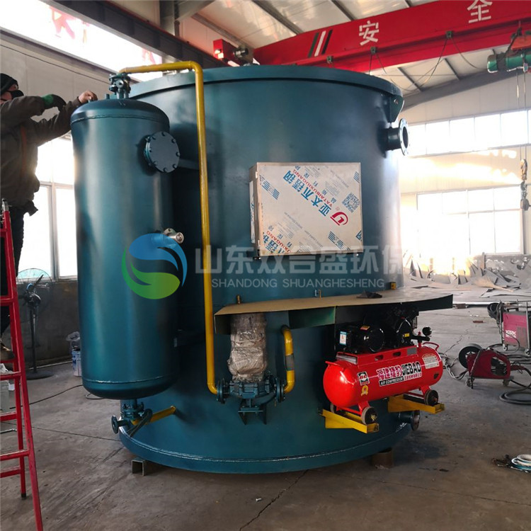 1、设备集成化:一般气浮系统均有分开的气浮池、投药设备、溶气罐、溶气水泵、空压机、污水泵组成,这样安装时间长,管理不便,占地面积大。竖流式溶气气浮沉淀机把这些分开的设备有机地组合于一体,一般调节PH值的污水,只要接上进出水等管口,立即可投入使用,且不需要做基础。
