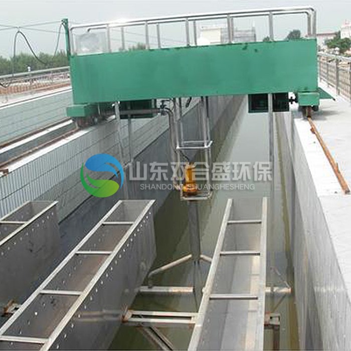 桁车式刮吸泥机广泛应用于平流式沉淀池的污泥刮、吸。本刮吸泥机结构紧凑,工作可靠,并配有自动控制和过载保护系统、轨道间距4米以下刮吸泥机采用中间集中驱动。间距6米以上时采用两端同步驱动。该机可以克服活性污泥比重小含水率高而难以刮集的困难,目前我公司生产的桁车式刮吸泥机分为斜板式(管)虹吸式吸泥机、不带斜板(管)吸泥机和泵吸式吸泥机三种。